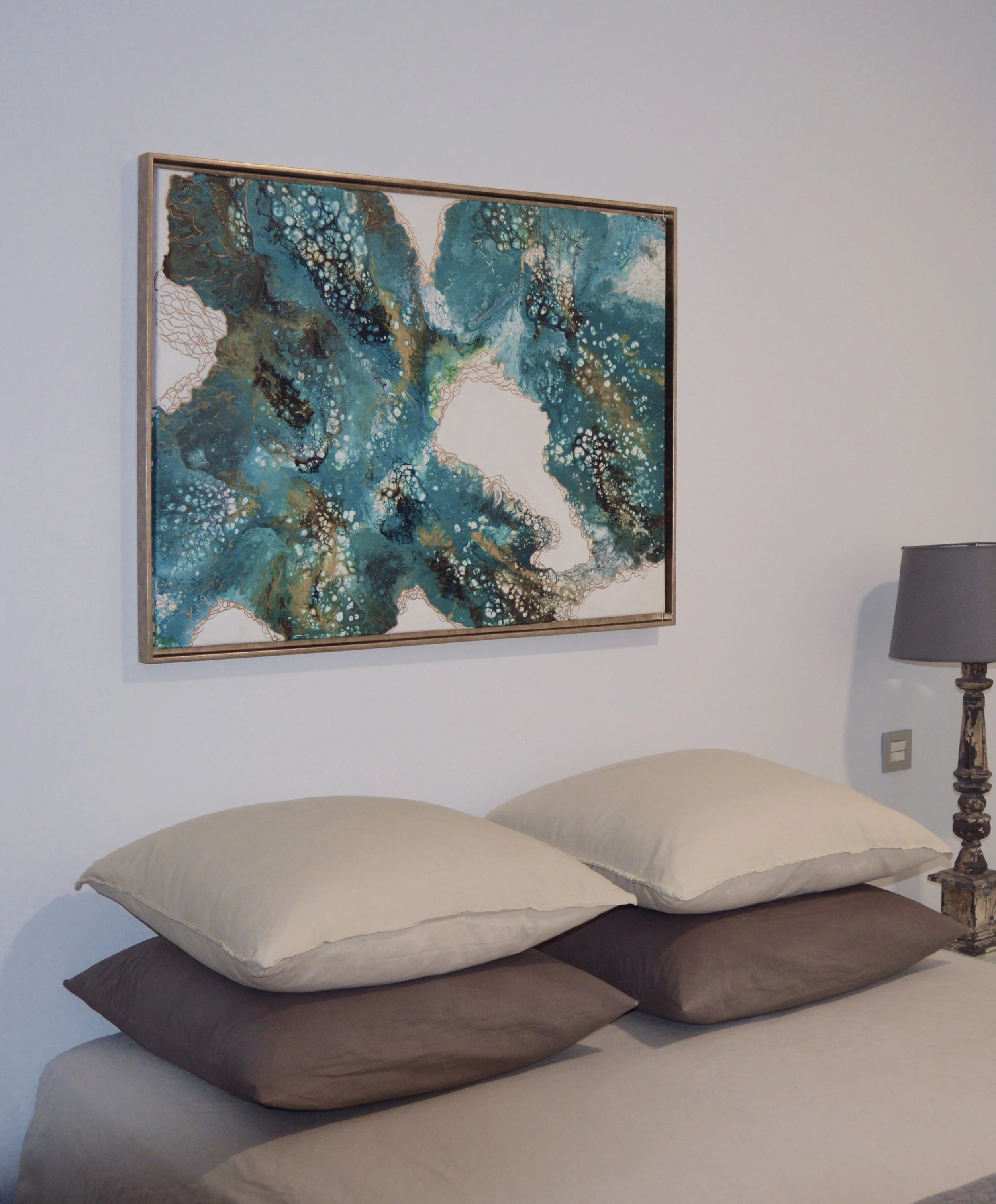 Detalle, Il pomerriggio azzurro, acrililo sobre lienzo, con marco plateado 73x100 cm