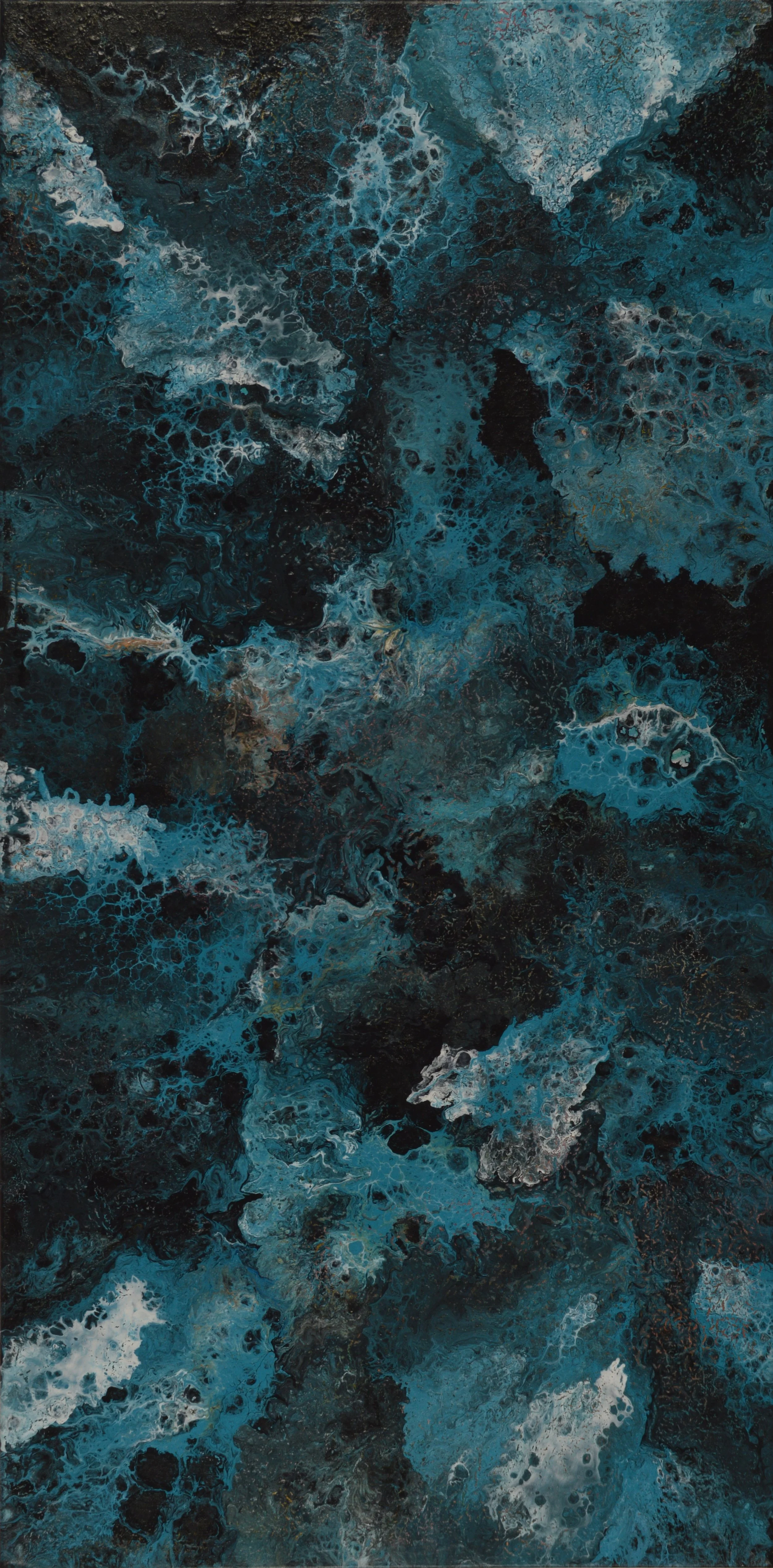 Detalle, El mar oscuro, acrílico sobre lienzo, con marco negro 50 x 100 cm