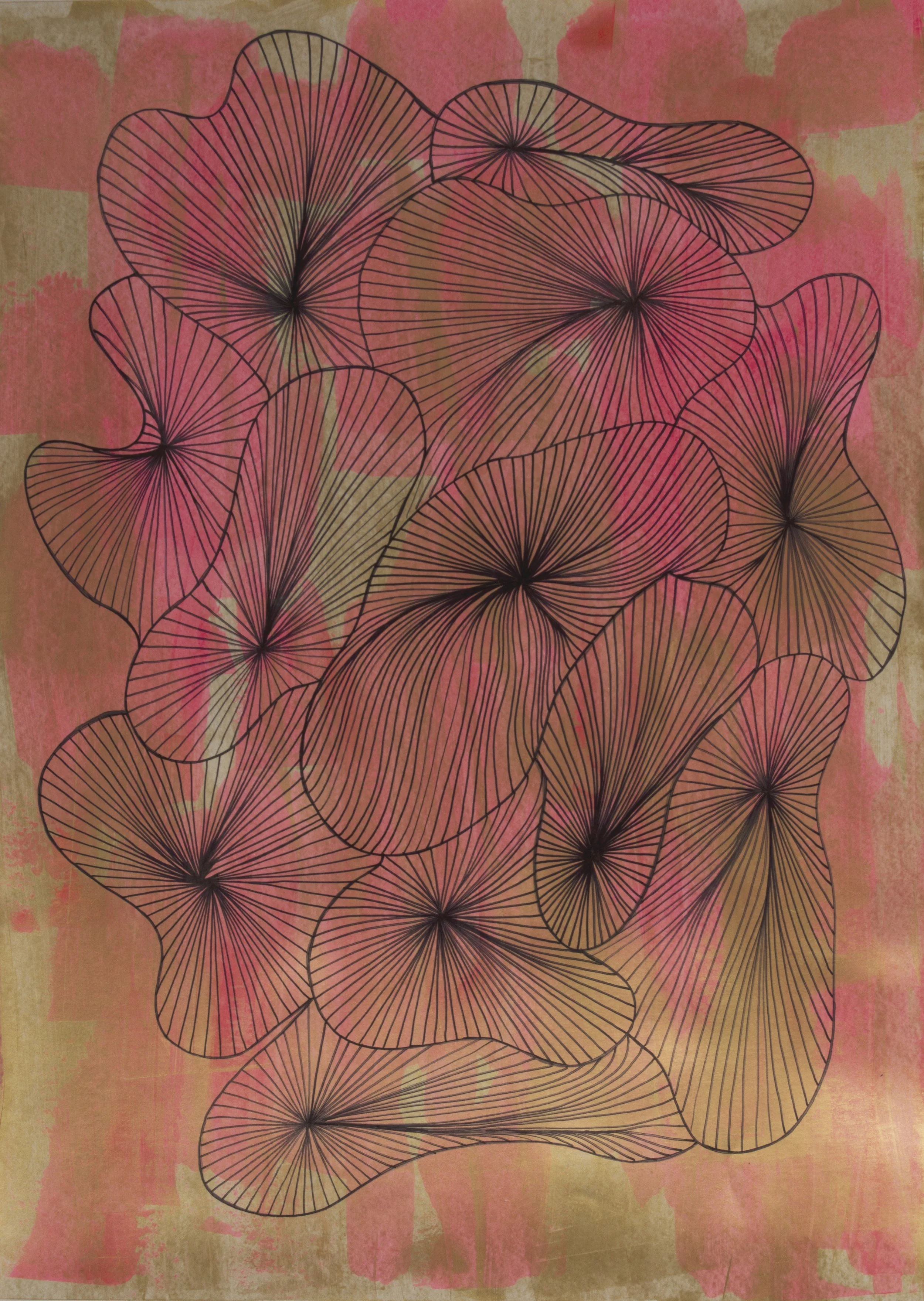 Pólipo floral II, pintura mixta sobre papel, 70 x 50 Cm